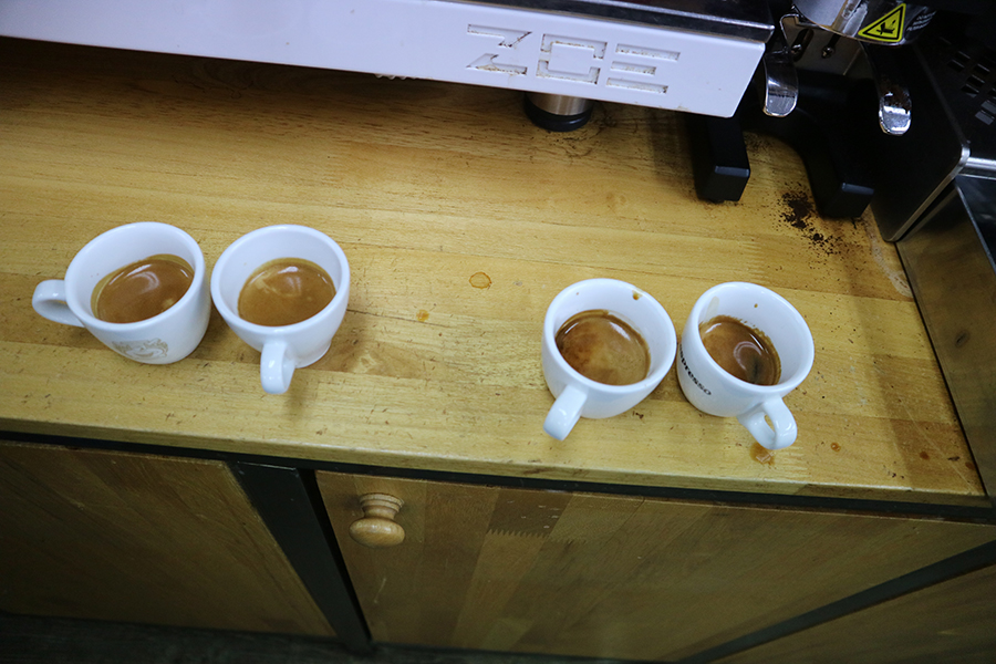 에스프레소 추출은 잔존가스와 온도를 가장 중요하다고 강조하시는 이승훈 대표님 잔존가스량 별로 준비한 원두를 다양한 온도에서 추출해서 보여주시면서 설명해주십니다.